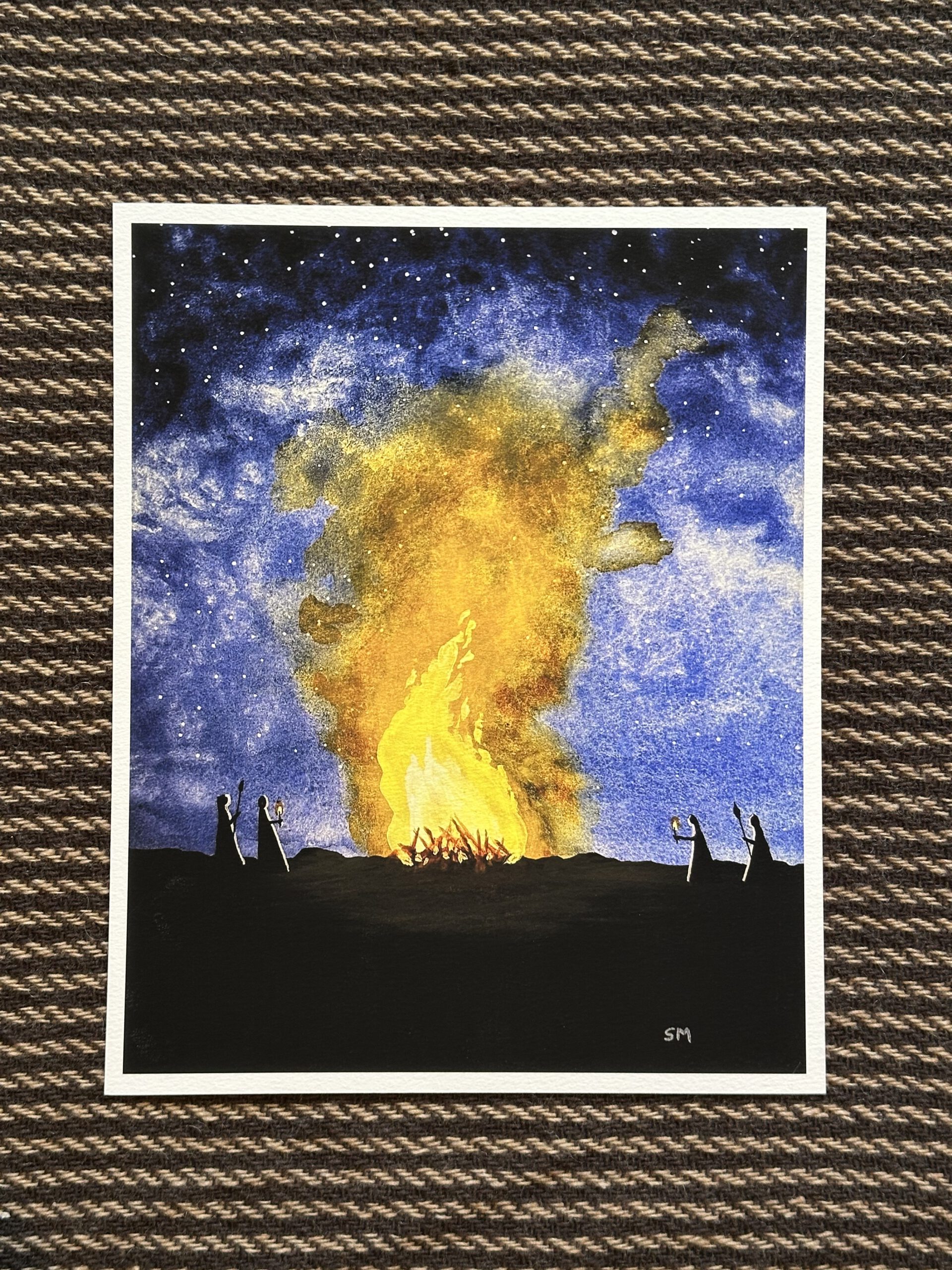 This painting is a depiction of that very mythical fire. A ritual of cleansing and hope for a fertile and productive summer season to come.