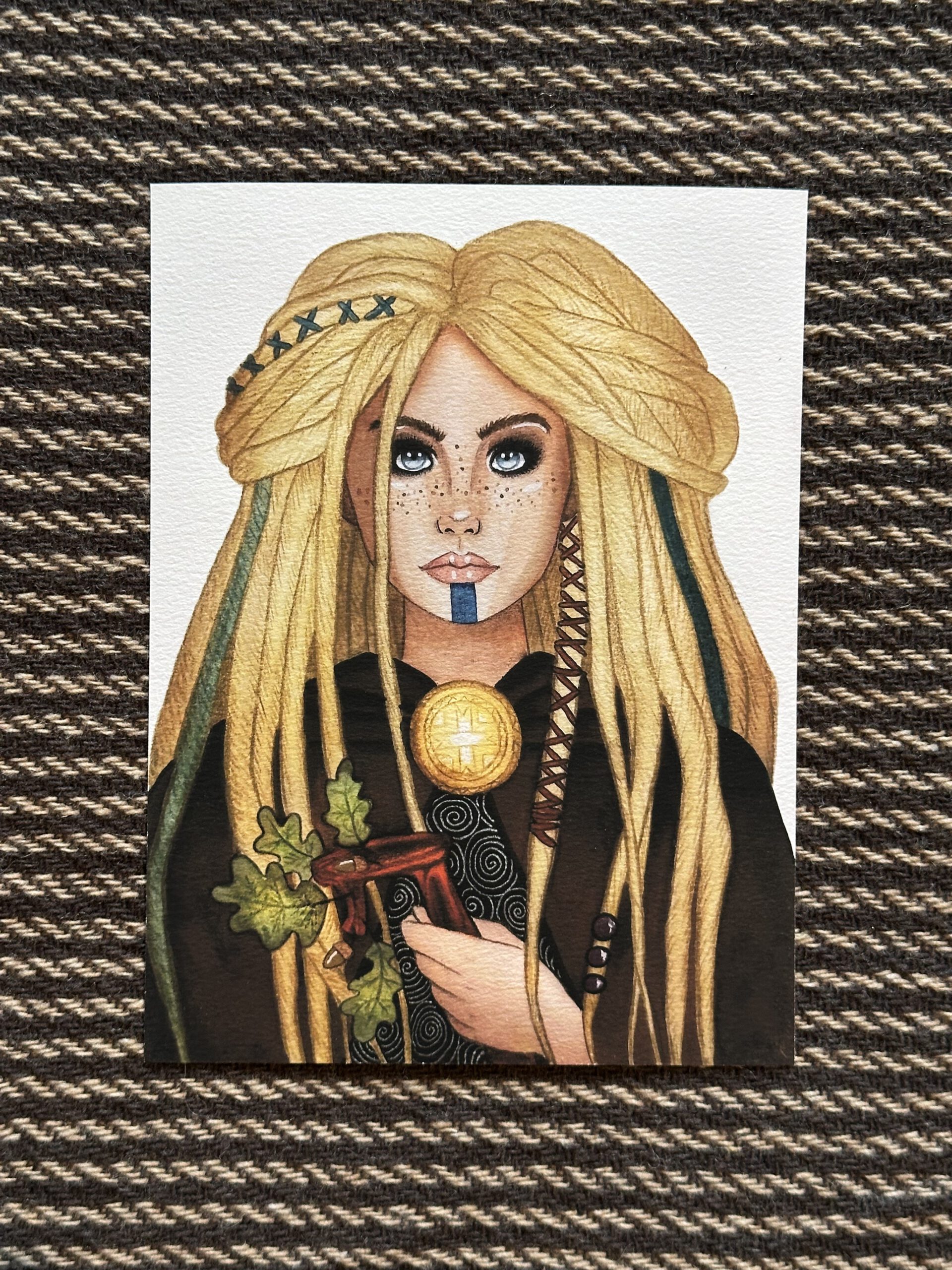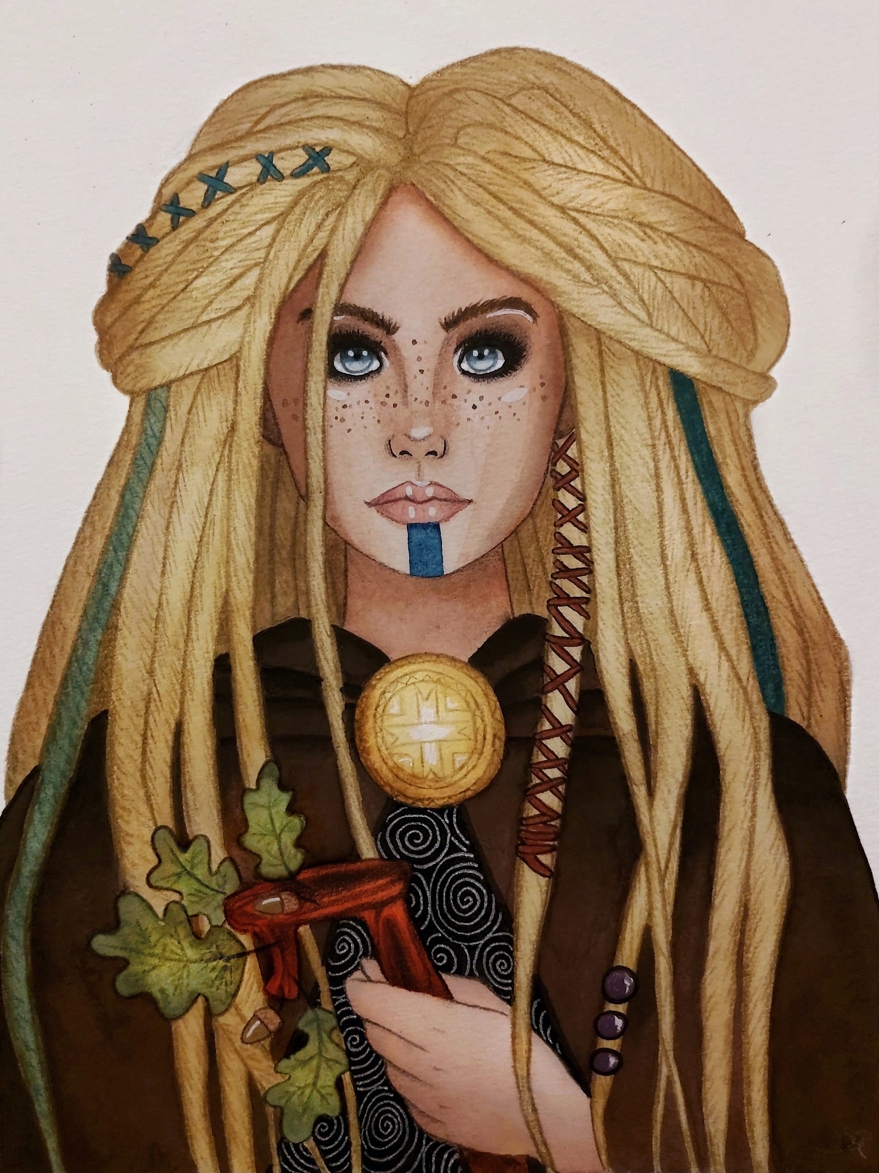 Some of the most important figures in Celtic society were the Druids. They were experts in a range of disciplines including medicine, the arts, law, and most importantly, magic and spirituality. This is Biróg, the Druidess who helped Cian of the Tuatha Dé Danann, and rescued Lugh, who eventually became King.