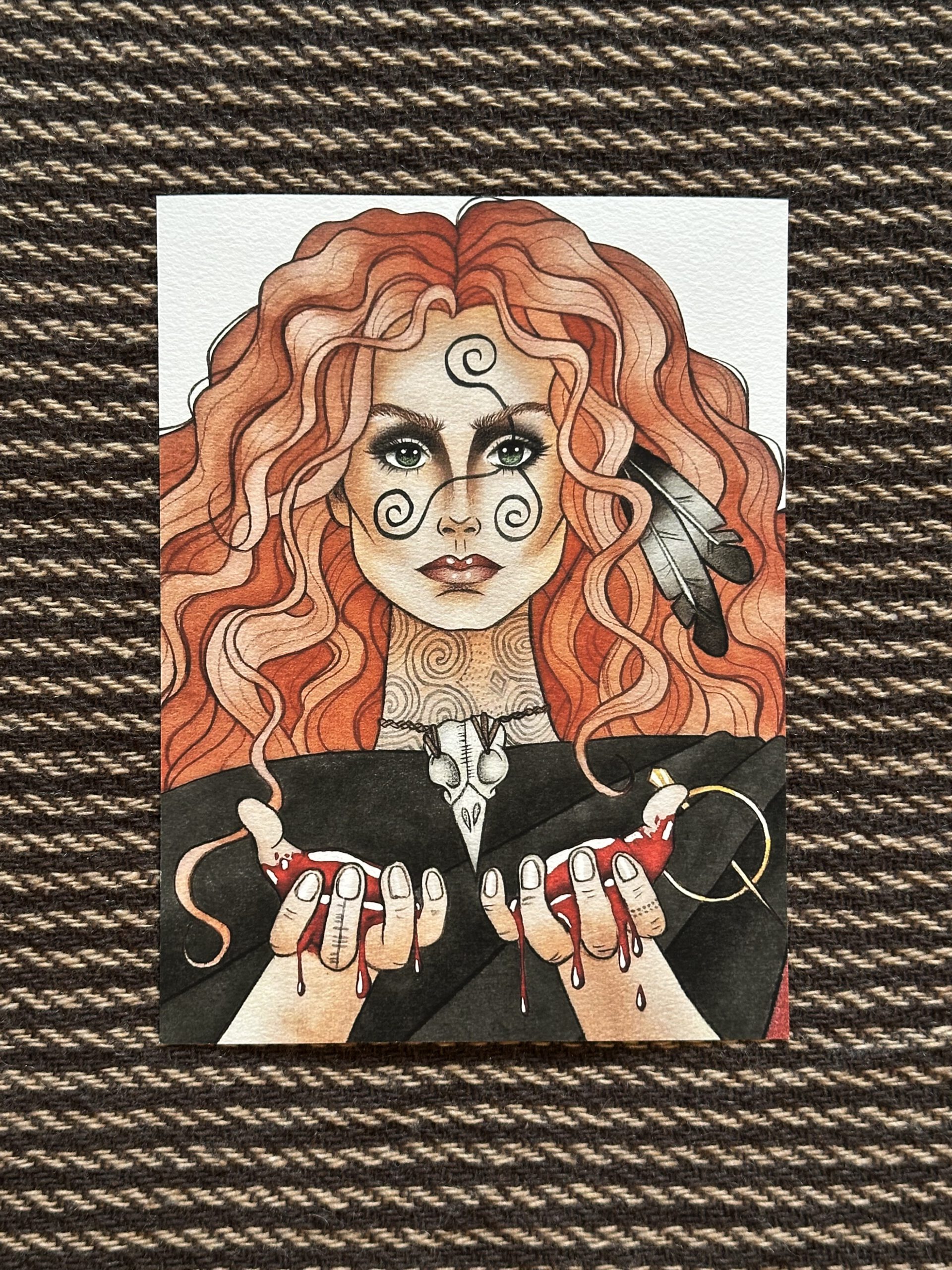 She was instrumental in the Second Battle of Moytura, and she is depicted in my artwork presenting two palms of the Fomorian King Indech’s blood to the army of the Tuatha Dé Danann.